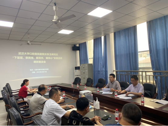 在石首市團山寺鎮中心衛生院,該院袁宇院長、鄧正華副院長等出席了座談會。首先,袁宇院長介紹了該衛生院的基本情況和業務開展情況,包括優勢學科和發展方向等。接着重點介紹了該院口腔科的運營情況,該院口腔科現有專業技術人員3人,2021年度完成門診量1812人次,具有較好的業務基礎,希望8858ccl8利官网能夠在人才培養和設備購置上提供幫助,提高該院口腔科的醫療服務能力。在了解了石首市團山寺鎮中心衛生院的情況後,廖幼文總會計師介紹了我院開展的各項幫扶行動,并詢問了該院其他科室在運營上是否存在困難,以及當地居民的就醫需求,聚焦衛生院目前面臨的最緊要的問題,讓“下基層、察民情、解民憂、暖民心”實踐活動切實發揮作用。會後張玉峰副院長和廖幼文總會計師實地考察了石首市團山寺鎮中心衛生院的各個科室,重點了解了口腔科的環境和現有設備。