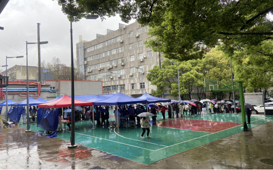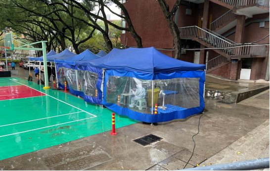 (氣溫驟降,我院為核酸檢測工作人員撐起了擋風簾,加裝了取暖器)
