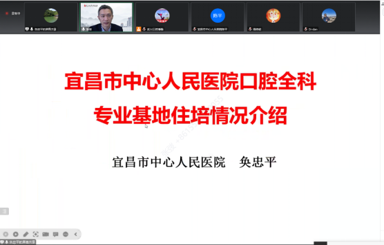 會議開始,由程勇副院長緻開幕辭,他表示我院與宜昌市中心人民醫院合作源遠流長,通過本次聯合培養的活動,整合資源,做到三個加強,加群師資隊伍建設,促進雙方住培師資交流;加強住培學員間交流學習,分享經驗;加強住培調研指導,提升管理水平。接下來由武大口腔口腔全科基地教學主任周修能及宜昌市中心人民醫院口腔全科基地奂忠平主任分别介紹了兩院口腔全科基地的住培管理情況及培養經驗。