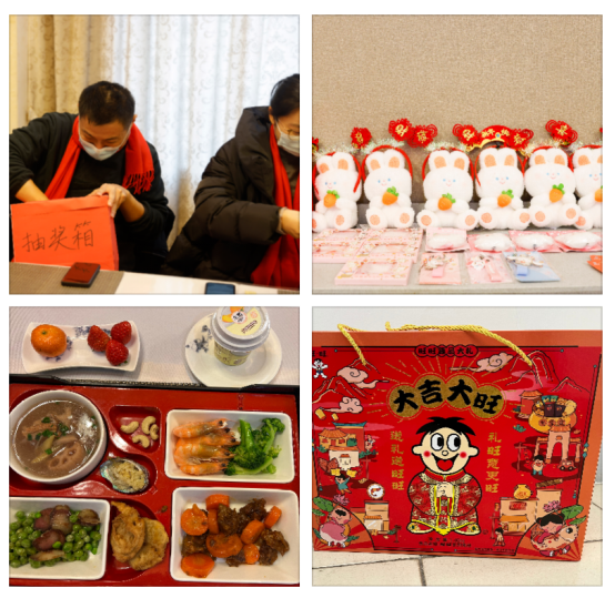 為增添節日氣氛,我院精心準備了抽獎環節。兔子公仔、兔子台曆、兔子香包、兔子鑰匙扣,可愛萌兔給大家帶來了不少驚喜,現場一片歡聲笑語。此外,我院也為春節期間留校學生送去了新年禮包,祝願同學們在新的一年裡平安喜樂,旺上加旺。
