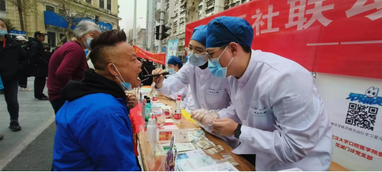 3月28日,範湖門診黨支部和畢業後教育黨支部聯合在江漢區民意街道開展社區口腔科普宣傳與義診活動。為社區青少年及中老年人群做免費口腔檢查,把溫暖送到群衆身邊。