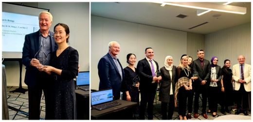 JOE主編Ken Hargreaves為孟柳燕教授頒獎(左圖); AAE年會最佳論文獲獎者合影(右圖)