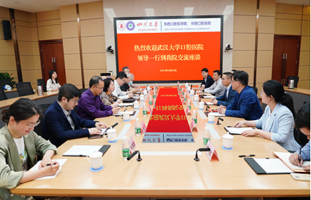 譚靜書記代表華西口腔對尚政軍院長一行表示熱烈歡迎,她指出華西口腔和武大口腔長期以來保持着良好密切的交流,希望兩院以此次交流為契機繼續深化合作,共促雙方未來發展。華西口腔副院長韓向龍介紹了華西口腔的曆史沿革以及人才培養、科學研究、醫療服務、國際交流、文化建設等方面的發展現狀。尚政軍院長表示華西口腔是中國現代口腔醫學的發源地和搖籃,目前在國内口腔醫教研等各方面均發揮着全方位引領和示範作用。武大口腔與華西口腔有着深厚悠久的曆史淵源,上世紀60年代初,時任四川醫學院口腔系主任夏良才教授夫婦奉調奔赴武漢,帶領來自四川醫學院口腔系的3名教授和7名應屆畢業生,白手起家創建了湖北醫學院口腔系(武大口腔前身)。同年華西口腔接收了 12 名湖北醫學院醫療系學生入川學習口腔醫學專業,為我院早期建設和發展充實了師資力量。60 多年來,華西口腔為我院建設發展給予了大量支持和幫助,兩院也在密切交流中結下了深厚的友誼。所以本次來訪的目的是尋根、感恩和學習交流,希望和華西口腔建立更加密切的合作關系,共同為我國口腔健康事業發展作出更大貢獻。