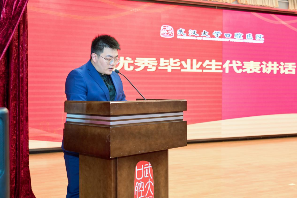 優秀住培學員韓嶽代表結業學員發言,“星霜荏苒,居諸不息,住培三年時光白駒過隙”,他分享了自己短暫充實、緊張忙碌的三年住培生活,表達了對老師們衷心的感謝,未來的路依舊很漫長,依舊充滿挑戰,他表示要努力提高口腔診療技術和水平,成為一名優秀合格的口腔醫生。