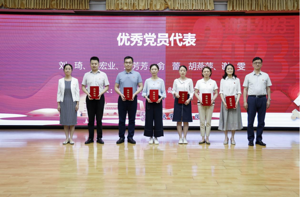 6月27日下午,我院在綜合樓三樓綜合廳召開慶祝中國共産黨成立102周年“七一”表彰暨“光榮在黨50年”紀念章頒發大會。全體院領導,全院黨總支、支部書記,全院中層幹部,受表彰黨支部及黨員代表、“光榮在黨50年”紀念章獲得者代表,學生代表、離退休代表參加會議。會議由黨委副書記馬博懿同志主持。