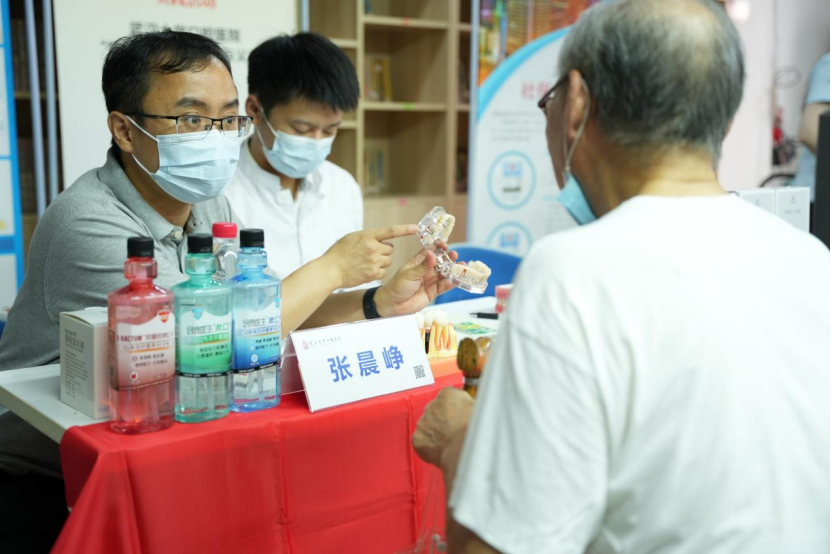 本次便民服務市集活動中,我院範湖門診黨支部黨員志願者在黨支書張晨峥的帶領下為社區居民檢查口腔疾病,科普口腔健康知識,向社區居民發放健康教育的宣傳資料,同時細心傾聽了社區居民的問題,并給予專業的回答,受到社區居民的一緻好評。