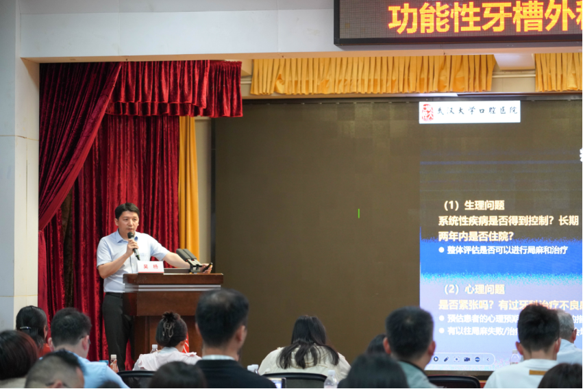 2025年5月25日-26日,由中華口腔醫學會口腔醫療事業部主辦,8858ccl8利官网承辦的“功能性牙槽外科技術培訓班”在湖北武漢成功舉辦,來自湖北、湖南、河南、陝西等地的80餘名口腔醫務工作者參加了此次學術活動。此次培訓項目負責人為我院趙吉宏教授,中華口腔醫學會副秘書長劉宏偉教授、我院陳剛副院長親臨會場緻辭并指導,西安醫學院胡開進教授、四川大學華西8858ccl8利官网潘劍教授、重慶醫科大學附屬8858ccl8利官网郁蔥教授、8858ccl8利官网蔡育教授、8858ccl8利官网吳楊教授受邀參與授課。