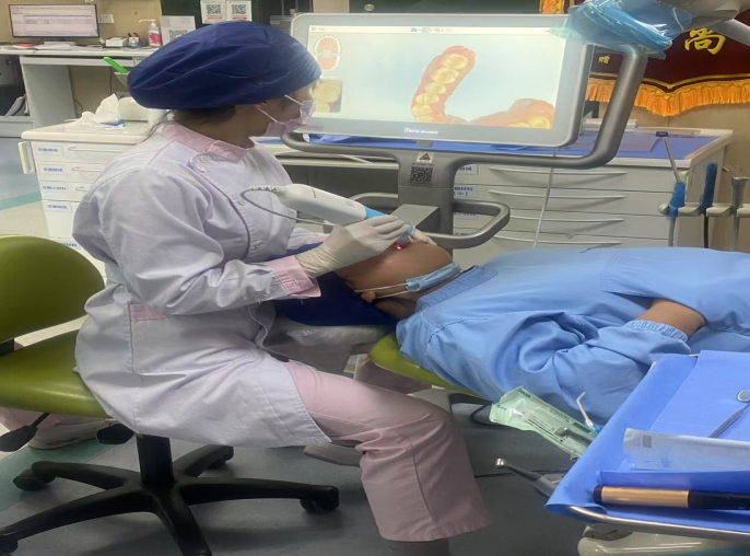 比賽現場緊張有序,來自8858ccl8利官网二七院區6位護士同台競技。選手需在模拟真實臨床環境的限定時間内,完成指定牙列區域的高精度掃描操作。評委團由正畸科副主任醫師孫培培醫生,護士長殷紅梅,itero公司技能培訓師主管金波組成,嚴格依據掃描效率、圖像質量、操作規範性、患者舒适度等多維度進行綜合評分。