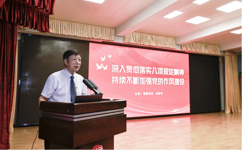 表彰大會後,院黨委書記付宏宇同志以《深入貫徹落實中央八項規定精神,持續不斷加強黨的作風建設》為題,講授專題黨課。